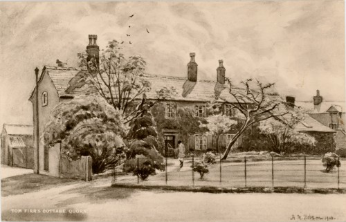 This postcard is entitled Tom Firr’s Cottage, Quorn, 1906. Tom Firr was at one time the most famous huntsman in England, and lived here when he was huntsman to The Quorn Hunt, based at Quorn Hall.
