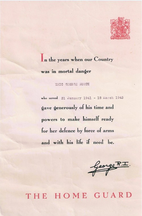 Eric George Worth joined the 'Quorn' Home Guard in 1941 and remained in the platoon until he was called up in 1943. Eric never lived in Quorn, but he went to Loughborough Grammar School.