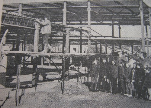 The construction site for Quorn’s new junior school, at Willowcroft, provides real-life lessons for pupils of the present school, St Bartholomew’s. They are studying the building materials used by workmen, and are taking a look at plant life near the site. With this group of juniors is headmaster Mr Mike Morton.