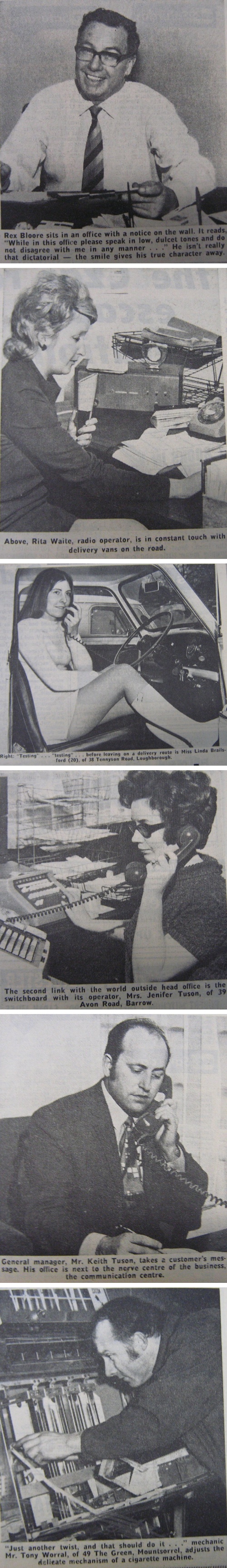 Customers are guaranteed the arrival of a van within an hour, a promise which keeps radio operator Rita Waite, of 24 Hall Leys, Quorn, busy at base handling 150 to 200 calls a day. Messages are broadcast through a land line connected to the company's 200 feet high aerial a few miles away near Cossington.