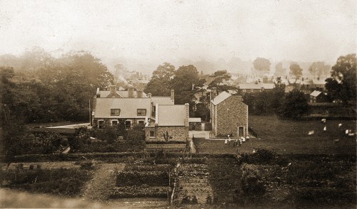 Having stood on top of the Church tower and taken a photograph from a similar angle, the picture is unrecognisable. Not only have the Church Rooms, the Farnham Memorial Hall and many other school buildings been built, the number and size of surrounding trees has increased enormously. It is only by walking round Rawlins, that the buildings on the photograph can be recognised.