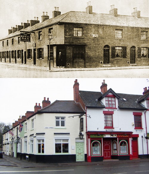 Royal Oak, corner of Meeting Street and High Street – then and now