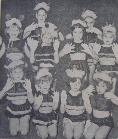 Front row 3rd from the left is Karen Thackray (nee Lister). Karen thinks that the girl to her right, (no fringing on her costume), is Margaret Barnes and that the blond girl on the far right, back row is Leslie Morris.