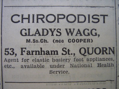 This was probably a home-based business. Anthony Cove has added the following information: "Mrs Wagg operated from a house on Station Road opposite the Green a small detached house that stood well back from the road with a concreted front garden. She used to ride about the village on horseback."