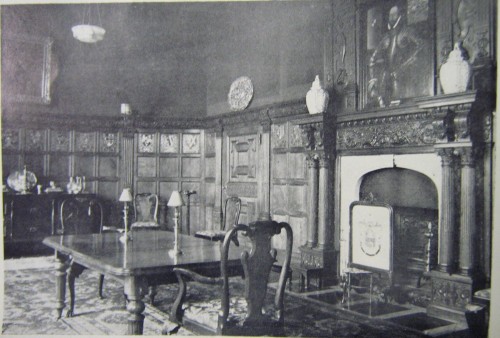 A room crowded with historical interest. Round the one half of the heavily carved Victorian panelling are crests of the branch of the Farnham family from Nether Hall and round the opposite side are the crests of the Over-hall Farnhams. High on the one wall is a combined coat of arms of the two families dating back to 1393. The fireplace is the real point of interest with the painting of John Farnham, Gentleman Pensioner to Queen Elizabeth's court in the centre.
