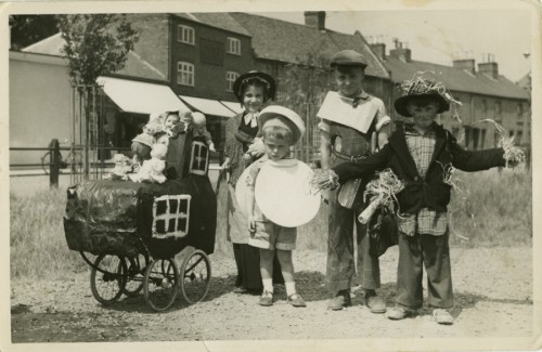 This photograph was taken in 1961 on Station road on the village green, before it was turned into a car park. What is now Bradley's supermarket and the cottages next to it, can be seen in the background.