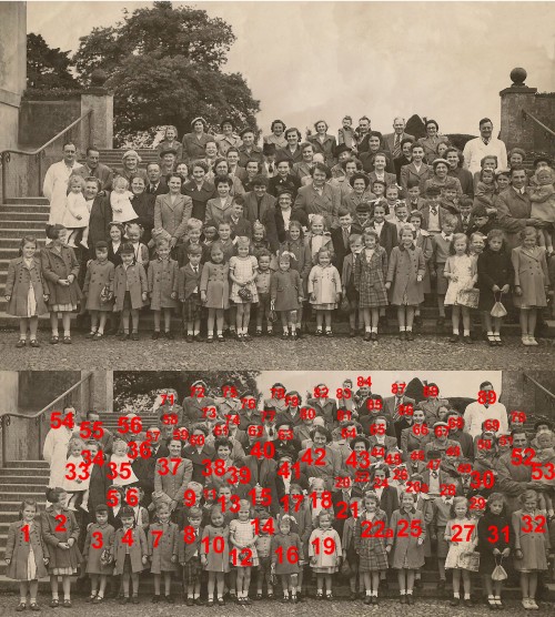 This is a photograph of St Bartholomew's Sunday School outing to Trentham Gardens in either 1952 or 1953.