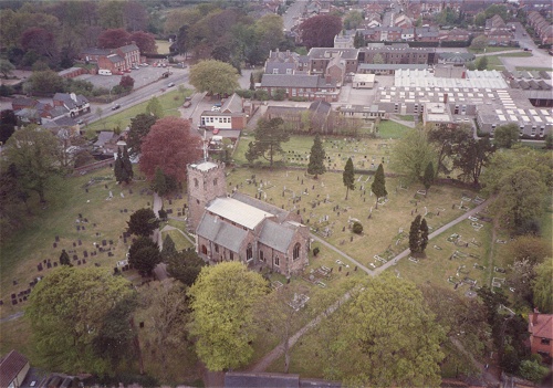 Photographed from above the Stafford Orchard in 1994. Rawlins can be seen upper-right. The Quorndon Fox is upper-left.
