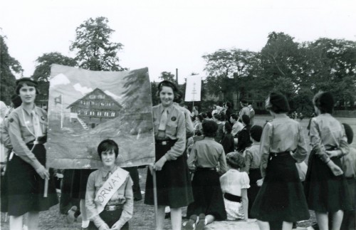 Does anyone know the location or the occasion of this photograph, taken of three Quorn Girl Guides in 1959? Left to right facing forwards: Valerie Field, Rosemary Callaghan, Pat Gamble.