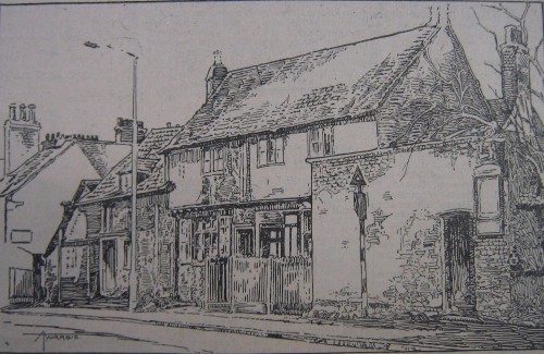 Anthony Cove tells us that this picture is actually three cottages, ie what were numbers 40 42 & 44 High Street - and continues - "when the cottages were knocked down the access to the White Hart was widened. There always was motor access to the rear of the pub with a skittle alley in the yard, which I think was burned down in 1960's".