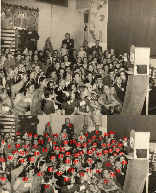 This photograph shows pupils, teachers and a few visitors enjoying a Punch and Judy show at Rawlins Grammar School Christmas party in the Farnham Hall in 1947. This was the last year before Rawlins became an ‘all girls’ school. As a result, a number of the boys were sent by the Education Authority to Loughborough Grammar. David Mee remembers that they considered themselves to be very fortunate as it was normally a fee paying school.