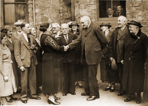 This photograph was taken in about 1935 and shows Mrs Louisa Bumpus from Mansfield Street, who was the secretary of Quorn Old People’s Tea Fund, welcoming Israel Williams (aged 80) to the party.