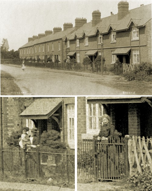 The photograph was very faded, but using enhancement techniques, it has been possible to reveal much more of the original detail. Below the full picture are two enlargements of ladies standing by the gates of two of the houses. Unfortunately, it is not possibly to identify them with any certainty, as each gate served two properties and there were different occupants between the 1901 and 1911 census returns.