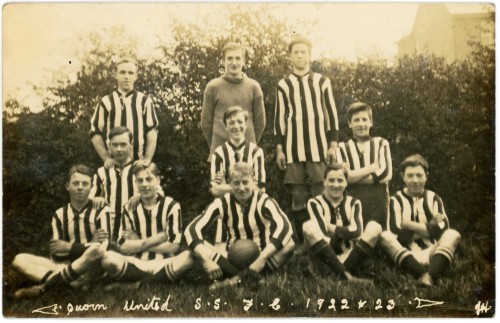 Taken in 1923, this extremely clear photograph shows Quorn United Sunday School Football Club. The Sunday School league was disbanded in the 1930s.