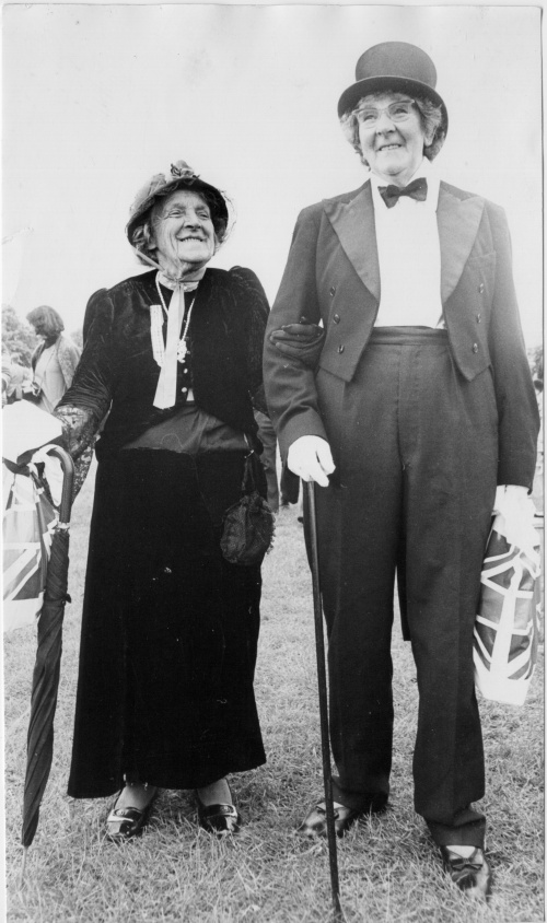 The ladies are believed to be Mrs Bishop and Mrs Williamson. Note the Union Jack carrier bags.