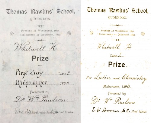 Henry Whitwell was born in Leicester in 1883, but spent most of his childhood living on Woodgate in Rothley. He was one of the first pupils at Rawlins School, which opened in Quorn Village Hall in 1892, before moving to their present site in 1897.
