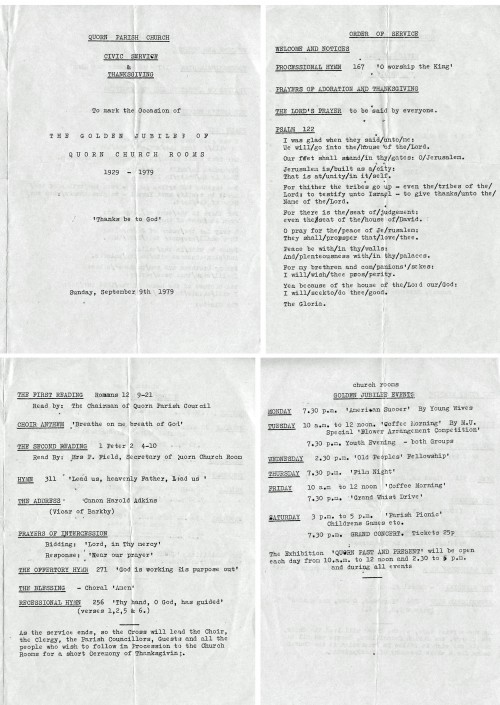 Quorn Church Rooms, 1979 golden jubilee order of service