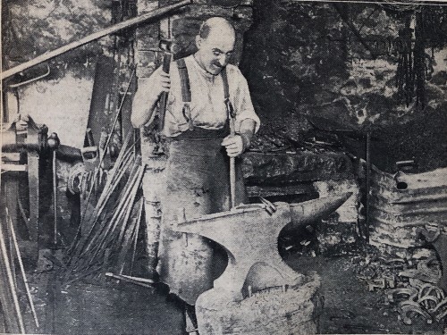 The picture was captioned ‘A blacksmith at the anvil in Mr Holmes’ smithy at Quorn’.