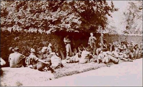 A break in training, resting on the grass verge by the stone wall in Wood Lane. This wall still exists and is almost opposite the entrance to Quorn Grange.