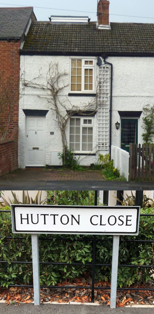 2) The Hutton Close street sign.