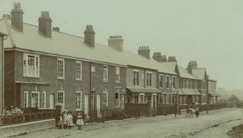 The photograph shows Hillyard Cottages on Barrow Road in the early 1900s. Number 60, where William was living with his parents in 1911, is third from the left.