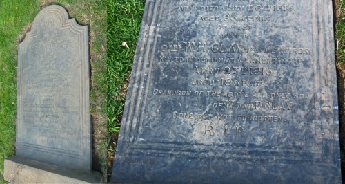 Sadly William’s father (William senior), died of throat cancer in 1925, aged 55. Prior to his death, he and Ellen had moved in with Ellen’s father, Henry Makepeace, at 7 Station Road (now demolished), a few doors away from the White Horse pub. William senior was buried just a few feet away from his mother-in-law and his son’s memorial. William’s mother Ellen died in 1934 aged 62 and is buried with her husband. Henry Makepeace (William’s grandfather), lived until the great age of 87, and in 1937 when he died, he was buried with his beloved Emily. Below is a photograph of the Makepeace grave (now laying flat), together with a close-up of the tribute to their grandson, William Clay.