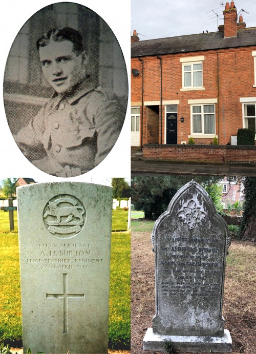 “BURTON – Sergt A H Burton, 1st Leicesters, killed in action by a shell on April 27th 1917, aged 22 years.