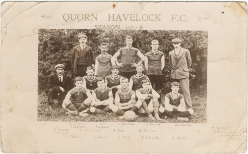 In summer 1909 he moved on to join Mansfield Wesley (Notts & Derbyshire League), but was a reinstated amateur back with Quorn Havelock in 1911, and with Mountsorrel United from 1912. After WW1 he played for Mountsorrel Town. His birth was registered in Mountsorrel, fourth quarter 1884. Both he and his brother John William (birth registered quarter 4 1886), were, (outside the game), stone quarry workers.