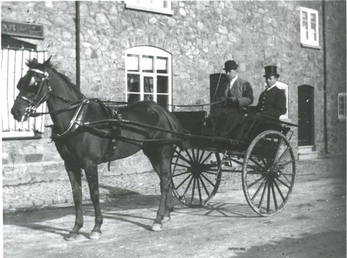 Dr Unitt lived in The Croft on Soar Road, the house was built in the eighteenth century. Like many general practitioners at the beginning of the twentieth century he made his rounds in a horse-drawn trap being driven by a groom who wore a smart livery with a bowler hat (holding the reins). The footway visible at the roadside was made from granite sets probably quarried in the parish. Dr Unitt took an active part in the life of Quorn and his concern was commemorated in the road that bears his name.