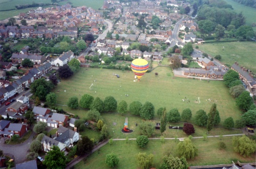 Taken from a hot air balloon in the mid 1990s. The Old Primary School can be seen centre-right.
