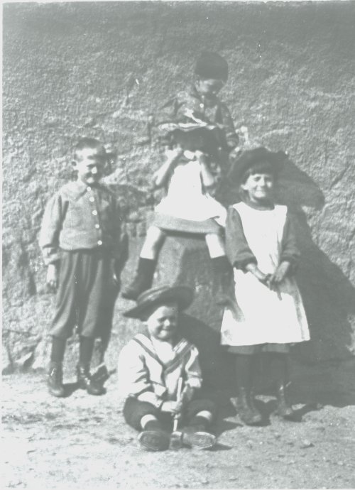 These five young children (c1900) dressed as was the custom. Girls frequently wore pinafores and boots heavily 'segged' or 'blayked'.