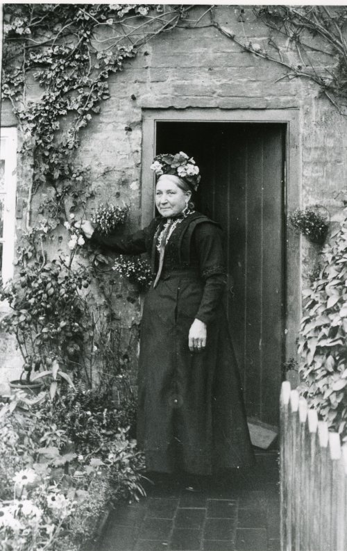 A tenant of the cottages c1900. The cottages, which stood opposite the White Hart were demolished in the early 1970s.