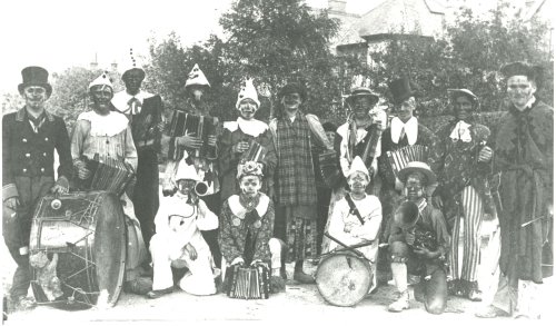 The band is dressed up just below Quorn Station bridge c1914.