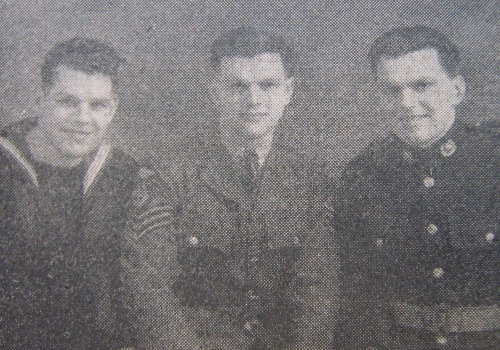 The three sons of Mr and Mrs Leonard Sykes of Castledine Street, Quorn, who are also the grandsons of the late Mr William Ironman, of Quorn and later of Loughborough, recently met for the first time for some years, on leave.