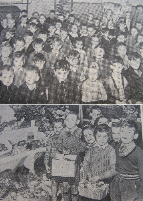 The second service was held in the Infants Department, which was artistically decorated with gifts of fruit and vegetables. The display was the work of teachers, Mrs I Wesley, Mrs E Holmes, and Miss M Bailey.