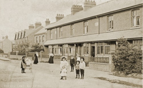These cottages are now numbers 47 to 53 Barrow Road. Most of the houses on this street were built around the turn of the 19th/20th centuries, when it was known as Barrow Lane