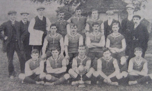 Winners of League Championship, 1907-8 Back row (left to right): F Waite, W Rawlings, W Jones, J Ball (Captain), A Herbert, A Dexter, H Mee, G Heggs. Middle row: H Waite, O Sutton, S Rue, H Holmes, J Pagett Front row: W Leaver, C Disney, J Neal, A Martin, J Booth.