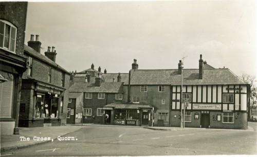 This postcard shows Dockray's Fish and chip shop (1 Station Road) and cottages at the side and back of the White Horse pub. The roof of Wright's factory is in the background. Some of the premises have been demolished to make a car park and outdoor area for the pub, whilst those immediately at the back have been incorporated in The White Horse.