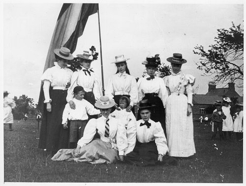 Celebrations on Stafford Orchard in 1897. The old primary school is in the background.