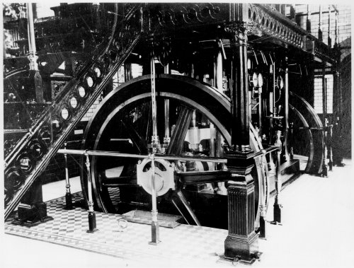 One of the three triple expansion steam engines in the coal-fired pumping station of Swithland Reservoir. They were dismantled in the early 1950s.